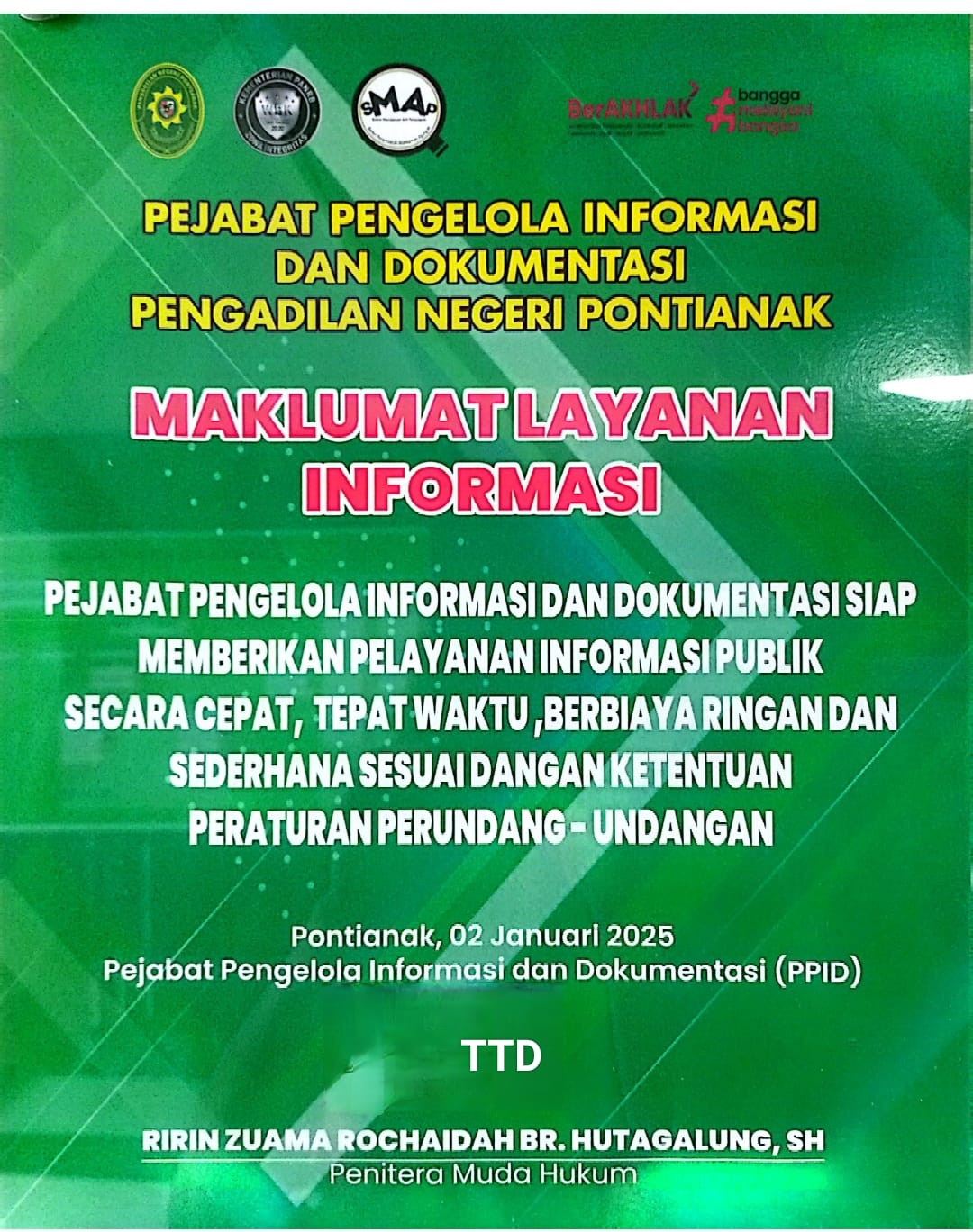 MAKLUMAT LAYANAN INFORMASI PENGADILAN NEGERI PONTIANAK KELAS 1 A